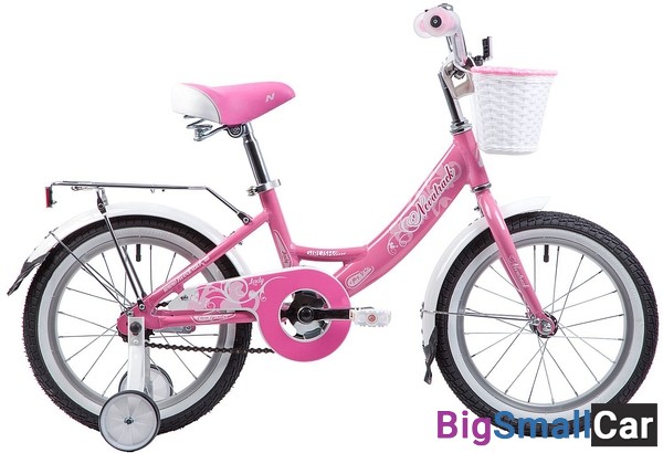 Велосипед NOVATRACK 16" GIRLISH LINE,розовый, алюм.рама, тормоз нож, цвет крылья, хром багажник, пер